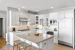 Kitchen: Dishwasher, Sub Zero Refrigerator. Separate Full Size Freezer, Gas Range Stove (Viking) Gas Range, Double Ovens, Microwave, Grill, Coffee MakerDrip, 2 Toaster Ovens, Blender, Separate Ice Maker to fill up coolers, Bar Sink, 3 Person Seating Area