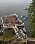 Located in a friendly waterfront community neighborhood, Liquid Sunshine is a perfect getaway home for adults and families that want to relax. Situated on the west side of the main lake, you get the best of both worlds– a gorgeous view but calm waters for paddle boarding, swimming and wake surfing! Three floors allows ample space and privacy for multiple groups. Liquid Sunshine is a 3 story house and sits above the water which is what creates an amazing view! But this means there are a few flights of stairs inside the house and also between the house and the boat house. Please reference pictures and give us a call if you have concerns about anyone in your group taking stairs.