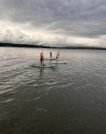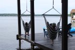 The double boathouse sits on deep water and features a 2 tier top deck that boasts magnificent sunset views, a dining area on the water, plus uncovered or covered sunbathing areas. 1 open boat slip is available to moor a boat, There are currently 2 available jetski lifts. Water toys include: 3 paddle boards, 3 kayaks, and a 4 person canoe. Guests are welcome to use life jackets onsite, however, we do not guarantee size/fit for individuals. Guests are encourage to bring their own life jackets. There is a 2 car garage plus a separate parking area that will fit at least 2 more cars for a total of 6 spots in the driveway.