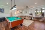 Indoors, the entertainment continues with a game room featuring a pool table, offering hours of fun and friendly competition. The well-appointed kitchen ensures convenience, and the spacious layout allows for comfortable accommodation for all guests.