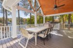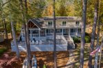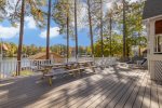 Escape to the serene beauty of Pretty Creek Retreat with our exquisite 5-bedroom, 2.5-bath vacation rental! Nestled in a prime location on Lake Gaston, this spacious retreat sleeps 18, making it an ideal getaway for family gatherings or group vacations. Immerse yourself in breathtaking water views from the comfort of the large covered lakeside porch and expansive decking, or step out onto the private second floor deck accessible from the lakeside bedrooms. The flat lot with a sandy beach area provides a perfect spot for relaxation and water activities. This beautiful lake house comes with an extra outdoor shower, adding a touch of convenience and indulgence to your stay. Rinse off after water activities or unwind beneath the open sky as you embrace the natural beauty around you.