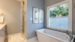The bathrooms are stocked with courtesy soaps and shampoos designed for quick "off the shelf" use. Each bathroom has a roll of septic-friendly toilet tissue as a starter. You are encouraged to bring whatever you feel you might need beyond the courtesy items provided.