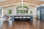Step into an immaculate haven where every detail has been thoughtfully curated for your comfort. Culinary enthusiasts will revel in the large kitchen, equipped with a massive island and ample seating, ideal for dining and entertaining. The open floor plan enhances the airy, inviting ambiance, making every moment spent here feel like a true retreat. Indulge in the luxury of a sophisticated wet bar, perfect for crafting your favorite cocktails or enjoying a glass of wine as you unwind. This elegant addition makes entertaining a breeze, offering a stylish and convenient space to relax and socialize. Outdoors, the gas grill awaits your barbecues, adding to the allure of alfresco dining on warm summer evenings. The expansive deck beckons you to relax and soak in the beauty of the surroundings.