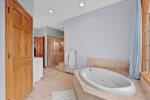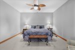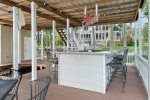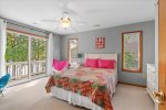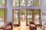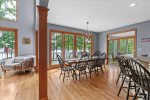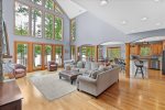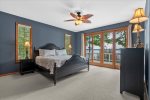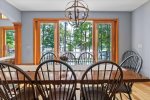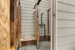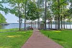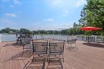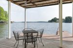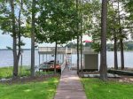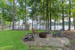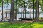 Step outside and immerse yourself in lake life with a private boathouse, complete with a tiki bar, where you can tie off your watercraft. The dock features a 6-foot water depth, perfect for swimming and water activities. Take advantage of the provided kayaks, paddleboard, and canoe for some fun on the water. After a day of adventure, rinse off in the convenient outdoor shower or unwind by the fire pit as the sun sets.